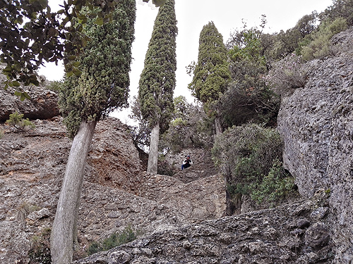 Volíem veure'l però l'església estava tancada. Només fan visites guiades. Doncs fins a la cova, vam pensar. I un cop a la cova, ja vam pujar a dalt, 200 metres de desnivell. No se si va ser bó per als meus genolls, però em venia de gust pujar a Santa Bàrbara.
