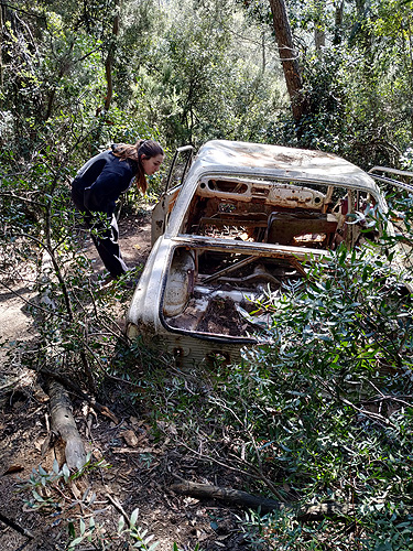 Per aquesta zona del Parc Natural de la serra de Collserola si que no hi havíem estat mai de mai. I és una excursió molt bonica que gairebé ens l'espatllen les moltes bicis que vam trobar a tot arreu. Fins i tot a l'espai d'especial protecció de la Rierada-Can Balasc. Dies després vaig fer una queixa a la direcció del Parc amb les fotos de les bicis passant per senders de menys d'un metre quan el mínim és de 3 metres per tal que estiguin autoritzades a circular-hi. No és divertit anar només per les pistes amples, diuen, però el cert és que et posen en perill si no les sents i molt sovint te n'has apartar i ficar-te entre els matolls per què bicis i persones no hi caben als camins. Al marge del tema de les bicis, és un recorregut molt maco, d'uns 9,5 quilòmetres molt variats. La Rierada és l'únic curs d'aigua permanent de Collserola. Té la categoria d'Espai Natural d'Especial Protecció -l'altre que hi ha a Collserola és el de la Font Groga- però això no impedeix que passin nombroses bicicletes, fet que no està permès. La ruta passa per la finca de Can Calopa, on hi ha les úniques vinyes de Barcelona. Ho porta una cooperativa i fan visites guiades a la finca -prèvia reserva, es clar-. També s'ha de reservar per a fer un mos fred o una copa de vi. Així que vam fer una ullada i vam marxar. Can Calopa és, normalment, el punt d'inici d'aquesta circular però és el més alt i nosaltres vam preferir sortir del punt més baix: el pont de la Siberia sobre la Riera de Vallvidrera dita també la Rierada. Hi havia també l'opció d'anar fins a Santa Creu d'Olorda però eren 3 kms més i ho vam deixar estar. De fet, és el segon cop que passem d'anar-hi. El primer va ser quan vam anar al Turó de Merlès, aquell dia per què plovia i vam canviar la ruta. Berta Solanas |