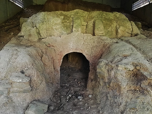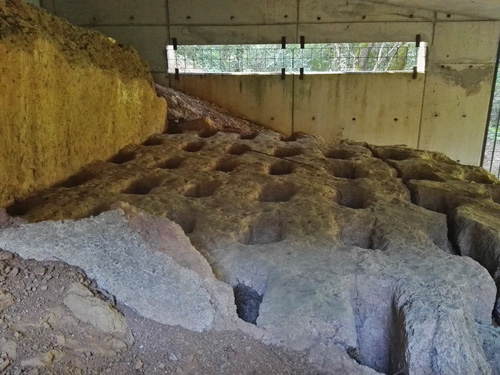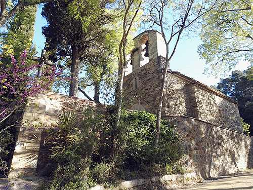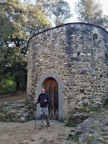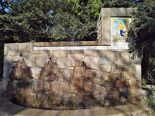 Seguim el camí pel que hem vingut i passem per l'ermita i per la plaça on hi ha la Font del Camp del Miracle. Seguim la pista -vigilant amb els molts ciclistes que hi trobem- fins al desviament a la dreta cap a l'ermita de Sant Adjutori, del segle IX. Una mica més endavant trobem un forn ibèric ben conservat dels segles II i I abans de Crist.