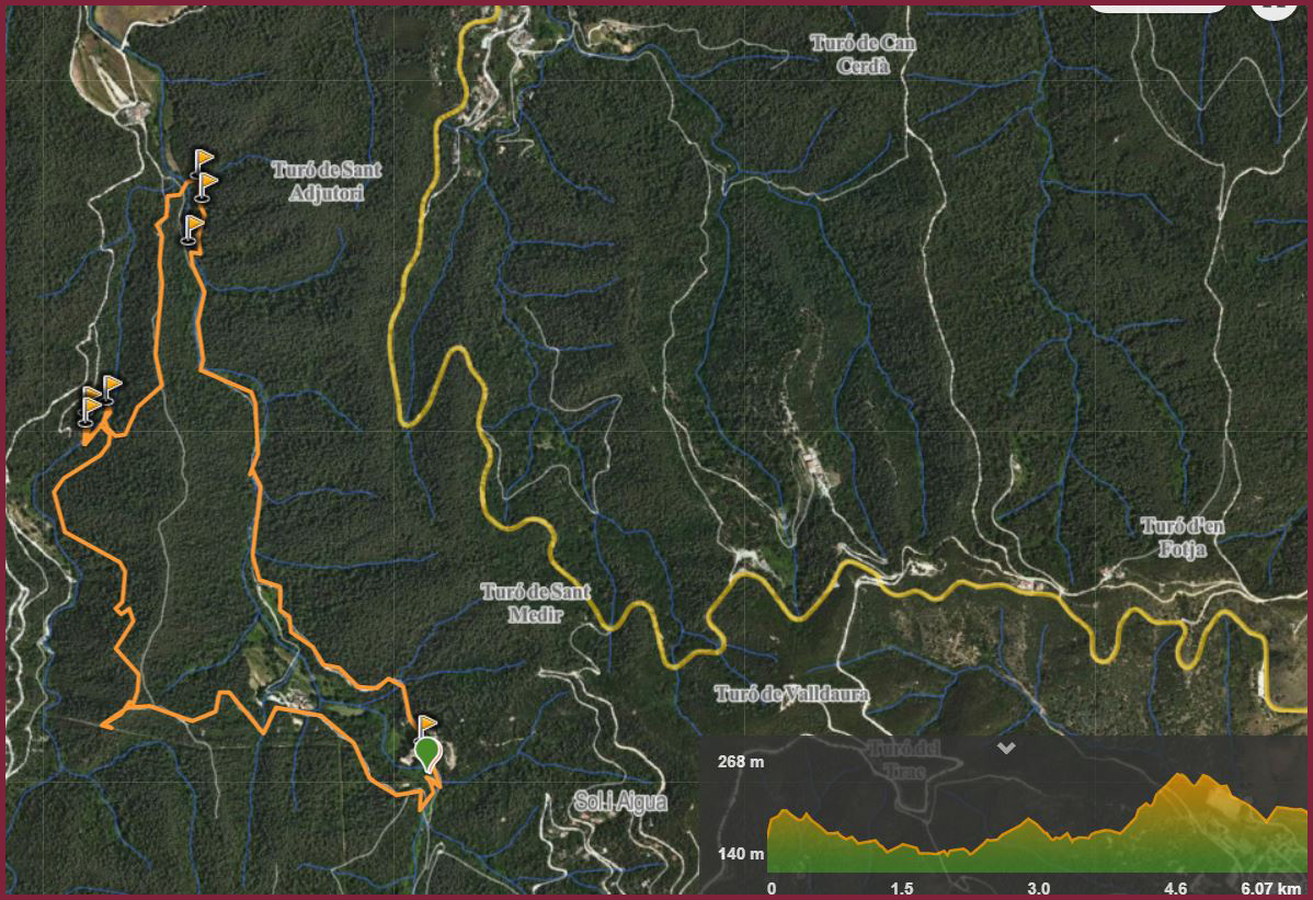 Abans d'arribar de nou a Sant Medir, trobem la Font de Sant Medir (molt malmesa) i el restaurant de Can Jané (pleníssim de ciclistes fent un mos o dinant).