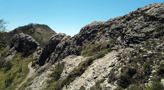 Mirem cap al nord i tenim majestuós el Comanegra. Pugem directes una mica ladejant cap a la nostra dreta sense anar-nos-en massa (hi ha diversos camins de pujada). Aquest tram el fem seguint l'itinerari 3 (Comanegra i Pic de les Bruixes) marcar amb senyals verdes i taronges.