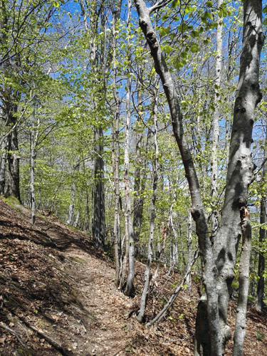 Passat el Puig de les Bruixes de nou una forta baixada, ara sense bosc, fins al Coll de Sant Marc (abans d'arribar a aquest punt moltes excursions ja tornen a Monnars, però nosaltres continuem). Nova pujada fins a Sant Marc: comença enmig d'una bonica fageda i es va escarpant fins arribar al cim.