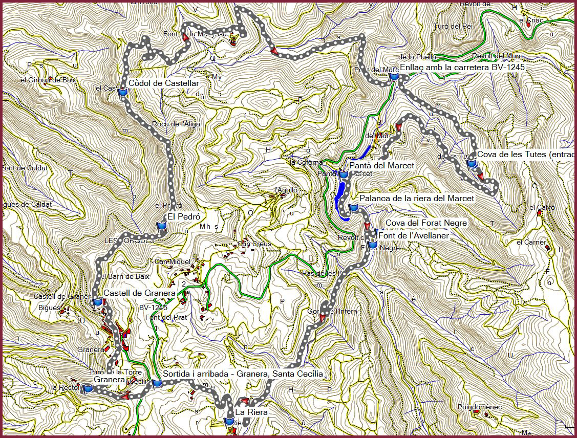 El que queda és seguir la pista. Primer fins a la masia La Riera (ara en venda) i després, en forta pujada i per les cases d'un barri de Granera, fins a l'ermita de Santa Cecília on tenim el cotxe.