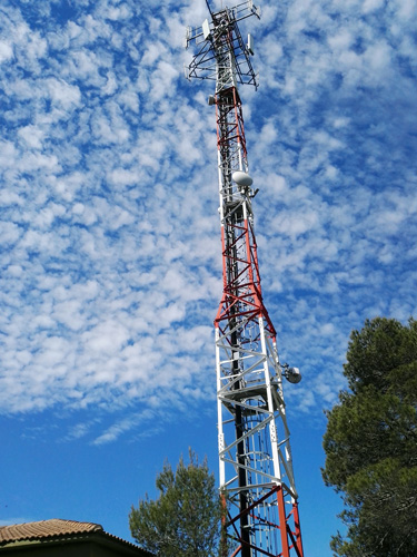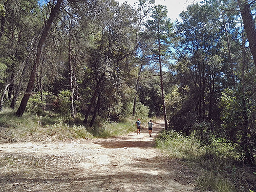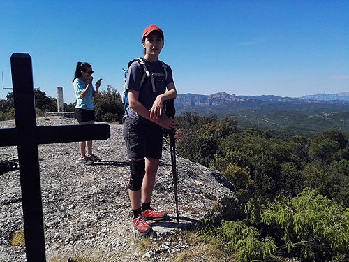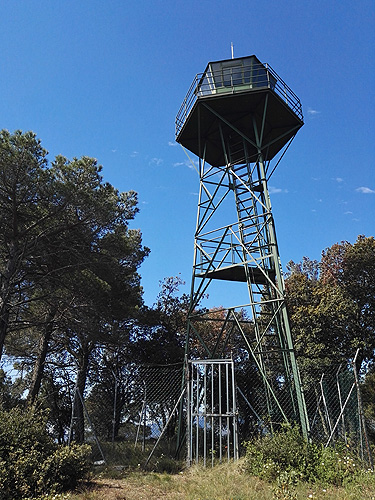 Baixem de nou fins a la pista per un camí -no per les escales- i seguim endavant. En un revolt pronunciat a la dreta -Collet del Llebre-, agafem el camí que, a l'esquerra puja molt fins al cim del Pedró, passant per una torre de vigia pels incendis.