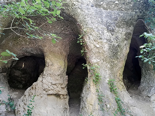 A la carretera travessem (cap a Castellterçol) el Torrent de la Riera, creuem la carretera i agafem un camí que surt a la nostra dreta. Anem pista amunt. Hem de trobar una fita gran a la dreta, el camí ens portarà a la cova de les Tutes (primer baixa i després puja).