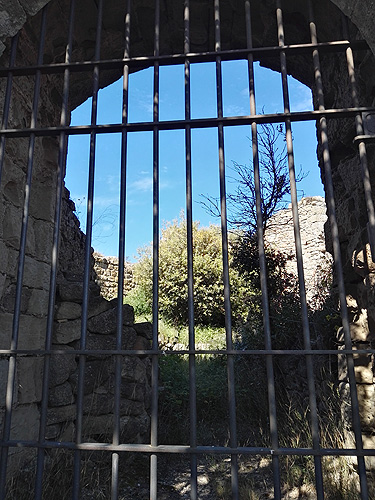 A l'arribar a l'entrada de la casa mirem la paret i hi ha unes escales molt dretes de pedra que porten directes al castell.