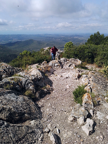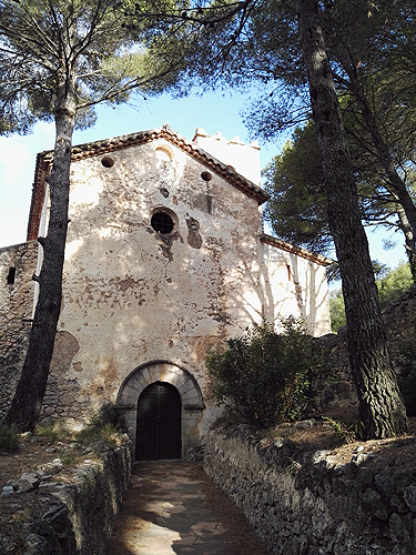 S'arriba a l'església -oberta-, amb bones vistes sobre el Baix Penedès i seguim camí deixant l'edifici a la nostra esquerra. També podem pujar per unes escales de pedra adosades a l'església i girar després a la dreta per agafar el camí cap a la creu (només hi ha un).