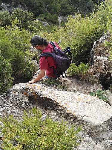 Després d'anar al Castell i a la Creu del Molar, el camí es torna més suau, carenejant fins a la Talaia del Montmell. La baixada de la Talaia és força pronunciada. Trobarem un primer trencall per tornar a l'àrea recreativa però nosaltres seguim fins al Coll d'Arques pujant i baixant per alguns petits turonets. Arribats al coll girem a l'esquerra fins a trobar una pista que hem de seguir també a l'esquerra. Per la pista anem trobant diversos panells explicatius de la vegetació de la zona -i encara en bastant bon estat-.
