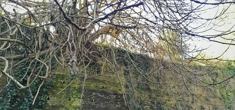 Seguim en direcció oest fins a trobar una pista que ens apareix per l'esquerra. Nosaltres girem per un corriol a la dreta i sortim a la carretera de les Aigües. Seguim aproximadament un quilòmetre cap al Besòs, passem per sobre de la carretera de Cerdanyola i agafem una pista que surt cap al nord, cap a Can Valldaura. En una de les llaçades surt el camí a la masia, nosaltres seguim pel de la dreta que va rodejant la finca primer per l'est i després pel nord. És en aquest tram on passem pel Torrent de l'Infern Petit. El torrent no es veu, tot és vegetació, una selva impenetrable.