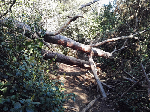 Estem a la zona del barranc de l'Infern Gran i en aquest tram s'ha d'estar atent al track ja que el que són pistes apareixen als mapes com a corriols i a l'inrevés. És també en aquest tram on ja comencem a trobar més gent i també ciclistes malgrat que els camins són molt estrets -ni un metre fan- i sovint hi ha arbres caiguts. I és en aques tram on ens passem el trencall a la quarta font del recorregut, la del Rossinyol.