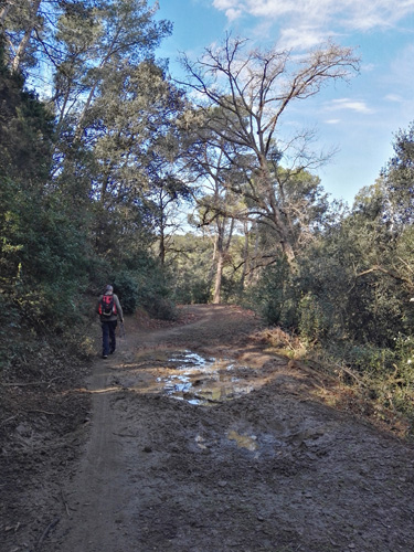 Just abans d'arribar-hi, el camí ens porta a una pista amb una barrera. L'hem de passar per un caminet a la dreta de la barrera.