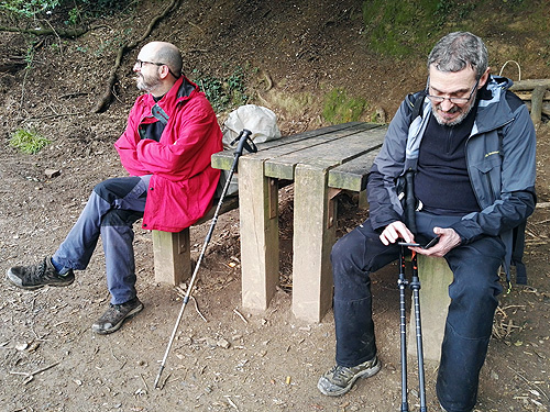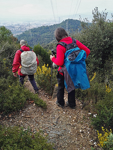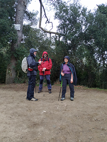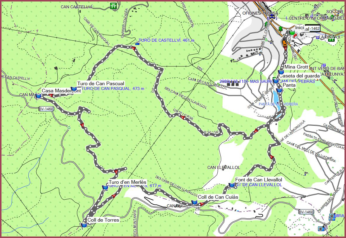 A la cruïlla de Can Llavallol girem a la dreta (a l'esquerra està prohibit el pas a la finca). A la següent el gir és cap a l'esquerra seguint els GR 92 i 96. El camí torna a fer una bona pujada mentre anem seguint les torres d'alta tensió. A la dreta trobem un vértex geodèsic, és el Turó de Can Pasqual (473 mts) tot i que no sembla un turó. Uns metres de més endavant arribem a la casa Masdemont. Si anéssim a la dreta aniríem cap al Castell d'Olorda, camí que descartem per la pluja que cau.