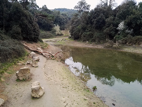 Ens enfilem pel camí més a la vora de la bassa (tornarem per l'altre que és més evident). Fa pujada però no excessiva.