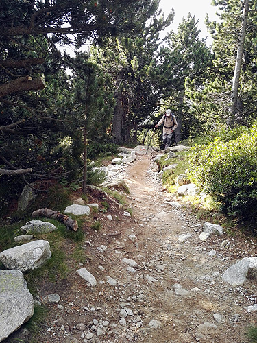 En el camí al refugi trobem diversos indicadors i tanques tèxtils per evitar que ens sortim del sender. Estan rehabilitant i plantant vegetació a les zones més degradades pel pas d'excursionistes.