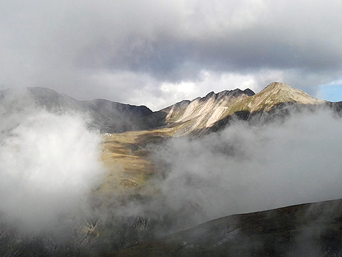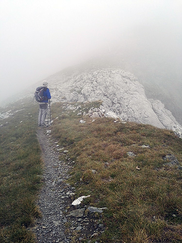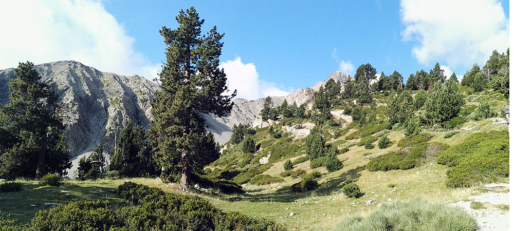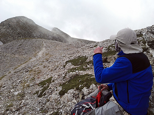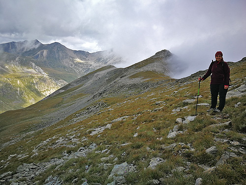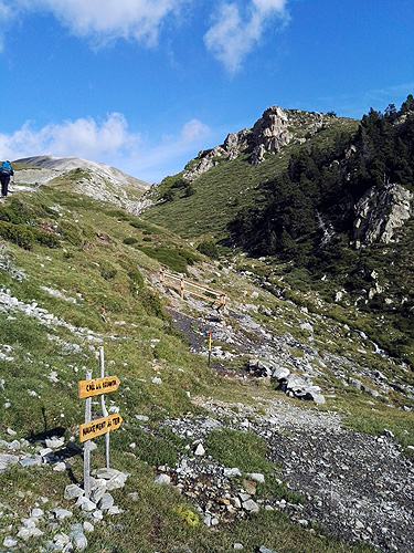 Pensant que faria molta calor ens vam aixecar molt d'hora i a les 8:40 ja érem a la curva d'on surt el camí al refugi d'Ulldeter (una mica més tard i no trobem lloc). Però no, no feia calor. I menys quan vam arribar al coll de la Marrana, feia molt fred i molt de vent. I ens havíem deixat els guants a casa. Imperdonable per a dues persones experimentades com nosaltres.