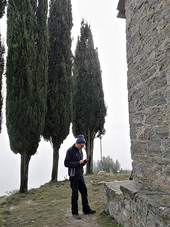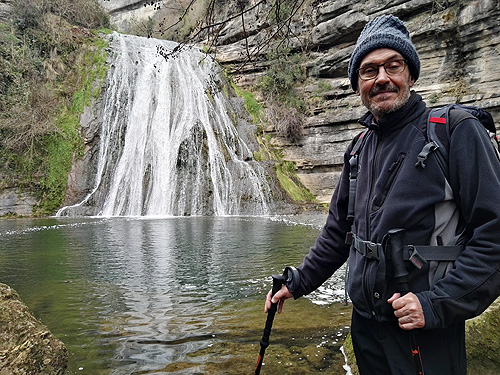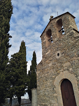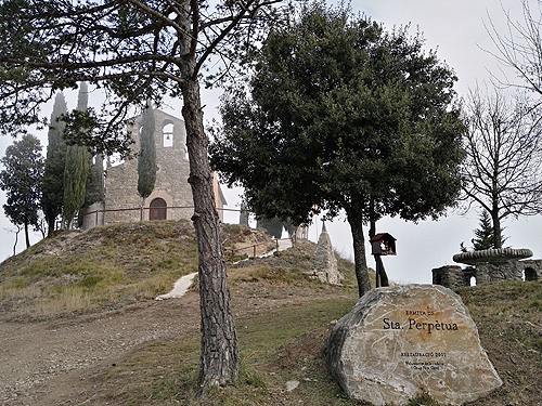 Fa fred quan ens aixequem tot i que no ha glaçat massa aquesta nit per què la carretera està neta. La circular que farem comença al municipi de Santa Cecília de Voltregà (seguirem la ruta de Wikiloc excepte en el tram que va al mirador superior de la cascada del Gorg Negre). El primer objectiu és pujar a l'ermita de Santa Perpètua, el punt més alt del recorregut i en el que trobem més gent (unes 8 persones) ja que a la resta de la volta anem pràcticament sols. En l'estona d'esmorzar una mica, puja la boira i ens deixa sense veure res de la plana de Vic.