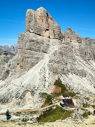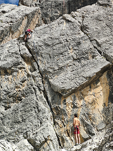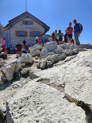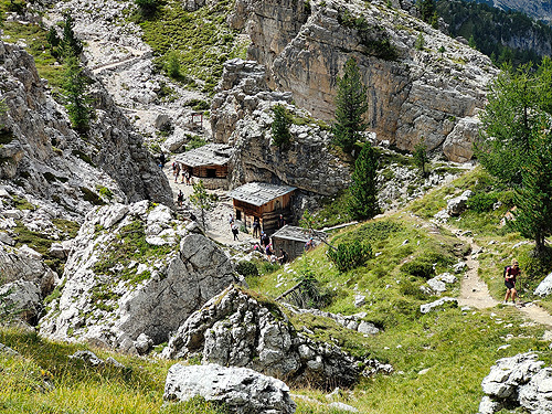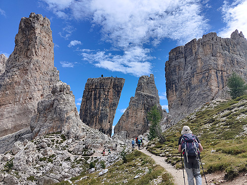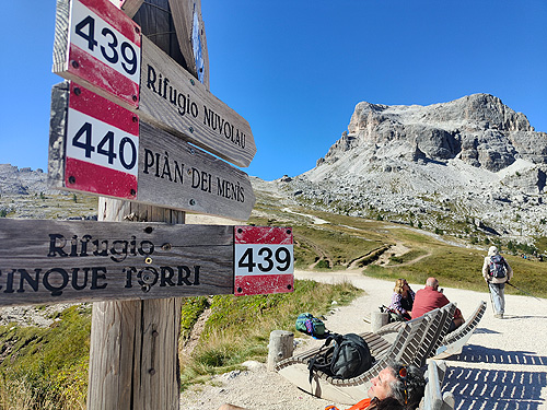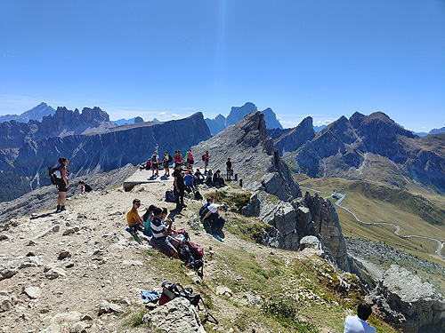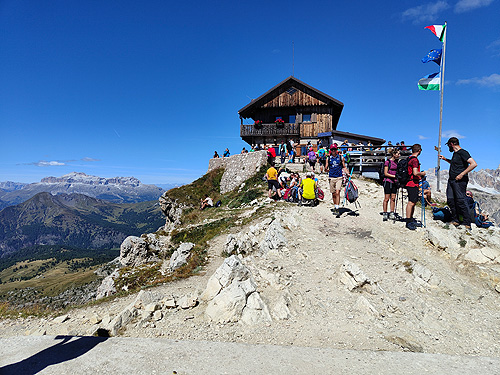 Com en altres excursions salvem el desnivell més gran en un remontador –en aquest cas un telecadira tapat-. Per això hem d'anar fins al refugi Bai de Dones. L'aparcament és gratuït i immens –quan baixem el trobem a tope i amb cotxes al camí d'accés- Abans hem passat per la base del … on hi ha un súper túnel també de la Gran Guerra, vestigi dels enfrontaments entre austríacs i italians. Unes muntanyes igualment impressionants que veiem amb tota la seva extensió quan baixem del telecadira, al costat del refugi Scoiattoli. I si al darrera nostre tenim Lagazuoi, Col del Bos i Tofana de Rozes, a l'esquerra tenim les Cinque Torri (no massa altes, però fascinants i només aptes per als escaladors) i al davant el Nuvolau i la mole de l'Averau. Som a les Dolomites però als Dolomites d'Ampezzo, a uns 20 quilòmetres de Cortina d'Ampezzo. El nostre objectiu és pujar al Nuvolau (al que també es pot pujar per la ferrada Ra Gusela des del Pass Guiau) i després fer la visita de les trinxeres i espais de la Gran Guerra que hi ha al costat de les Cinque Torri. La pujada al Nuvolau encara té més gent –és més fàcil- que la del Piz Boé. I quan arribes a dalt, et trobes un refugi –diuen que és el més antic de les Dolomites-, a 2.575 metres i un cuiner a l'exterior fent bocates de botifarra calenta. Ahh, des d'aquí també veiem la Marmolada i el Piz Boé. Després de 4 dies a les Dolomites ja no ens sobta això dels refugis de muntanya convertits en restaurants –aquest almenys tenia una zona de pic-nic-, però potser aquí es passen. En aquesta petita zona hi ha 4 refugis: Nuvolau al cim, Averau a la Forcella Averau –on arriba un telecadira des del Pass Guiau- el Cinque Torri a la falda de les Cinque Torri pel nord- i el Scattaioli on arriba el telecadira de Bai de Dones. I el cas és que –segona quinzena d'agost- tots plens. Nosaltres portem el menjar a la nostra nevereta. I busquem una zona de pic-nic. Al costat de l'aparcament hi ha un llac, però tot està tant ple que fugim. El que hem trobat al MapsMe és a Pieve. Per arribar-hi hem d'agafar un altre itinerari diferent al d'anada –que ja ens està també bé- i pujar fins al Pass Pordoi per Arabba i tot el seu domini esquiable. Resulta que aquesta zona de pic-nic està al mig del poble. Curiós. Aprofito per a fer un cafè. A la tornada agafem un gran embús que comença a mitat de camí entre el Pass Pordoi i Canezei i que dura fins al súper de Vigo di Fassa on havíem de fer la compra pels propers dies. Berta Solanas