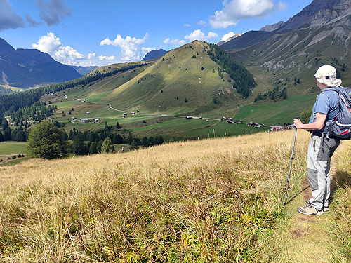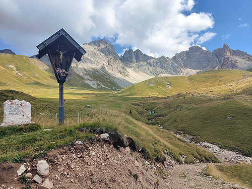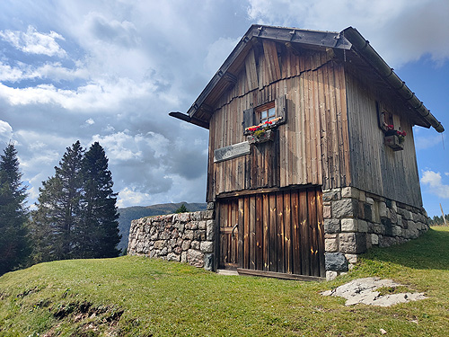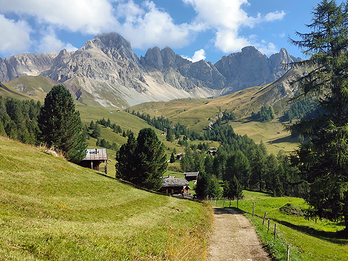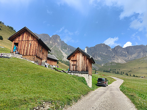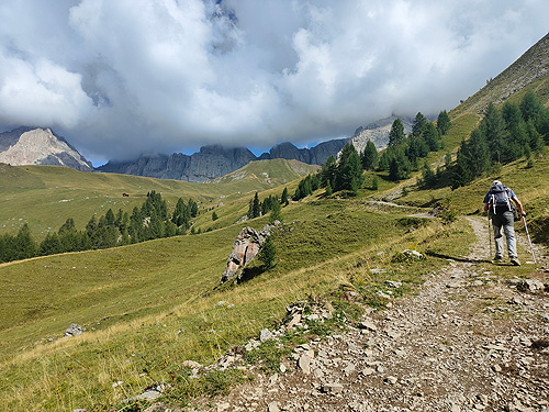Estem a l'altra banda de la vall de san Nicoló, cap al sud i és molt més tranquil·la. Sobre tot per què nosaltres no vam sortir des del mateix Pass de San Pellegrino, sinó des del camí que porta al refugi de la Flora Alpina (ni rastre de flora alpina, és un hotel-restaurant i punt. Per l'altra camí es veia arribar molta gent. Vam fer una circular suau (uns 400 mts de desnivell) amb molt bones vistes. Ens va agafar un fort xàfec de 15 minuts però en el punt més “complicat” de l'itinerari, una baixada per dins del bosc amb fang per la pluja del dia anterior. Quan va parar va sortir el sol i vam arribar al cotxe, la roba ja era seca.