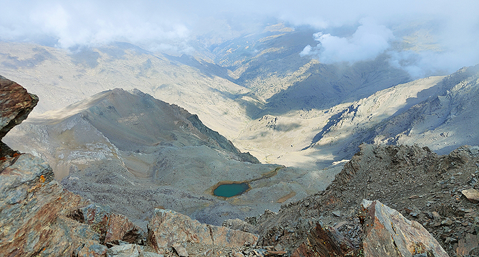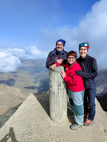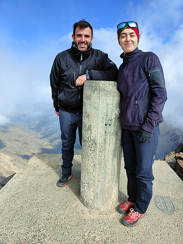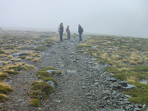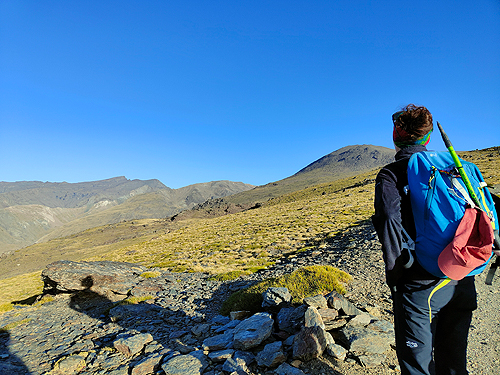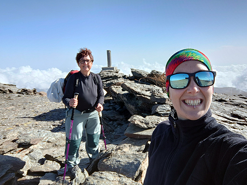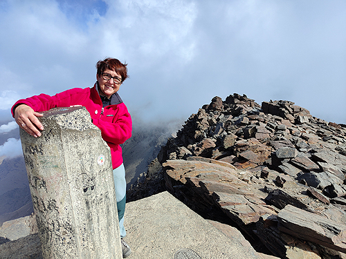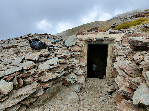 Comencem el dia amb un sol radiant i amb forá vent que ens acompanyarà tota la jornada. A l'inici de la ruta es veu el vessant sud de Sierra Nevada, amb el Mulhacén (penúltima loma) i el Veleta. A mesura que anem pujant van arribant núvols i quan arribem a dalt, el Veleta apareix i desapareix igual que les lagunes que hi ha a sota. La baixada la fem sense pluja que comença quan estem ja al niu de metralladores. A la sortida, la boira ho envaeix tot, el camí fins als minubusos i durant bona part de la pista de baixada. El Mulhacén és una excursió fàcil per un camí perfectament marcat. L'única dificultat pot està a l'alçada i al vent que sol fer. El track que adjuntem fa una circular ja que a la tornada passa per la Laguna de la Caldera i pel refugi llure de la Caldera i passa a prop del refugi de Poqueira. Nosaltres (amenaçava mal temps i, de fet a va ploure a l'arribar al Alto del Chorrillo de tornada) vam anar i tornar pel mateix lloc. Ja arribant a l'Alto del Portillo, val la pena anar a veure un niu de metralladores de l'exèrcit republicà de la Guerra Civil que s'ha conservat i serveix d'aixopluc per quan plou (com ens va passar) o per esperar l'arribada del bus de baixada si hem fet el trajecte més ràpid del que ens pensàvem. Està senyalitzat amb un pal dels de neu i hi caben una trentena de persones (enxovades, això si). Berta Solanas |