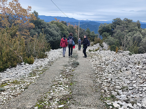 La pujada la vam fer pel caminet que puja per l'ermita de Sant Climent, mentre que la baixada la vam fer per la pista gran que és la que puja a les antenes del cim. De fet, volíem baixar un tram per la pista i enllaçar amb Sant Climent, però no vam trobar el camí o ja estava massa tancat de no passar-hi gent. També hi ha l'opció de fer circular passant per l'ermita de Santa Brígida i fer l'últim tram per la carretera. A dalt feia molt de fred i vent, i a la tornada ens va començar a nevar, tot i que només va agafar als nostres anoraks. |
