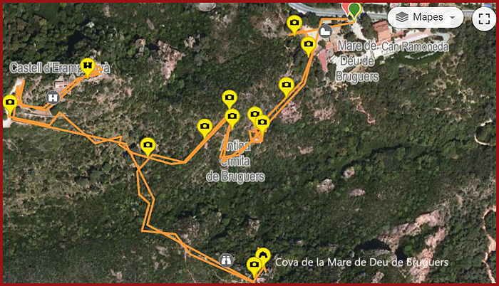 Excursió molt a prop de Barcelona, fet que no ens va obligar a matinar massa i no començar a caminar massa tard. Important també per no trobar la zona d'aparcament plena. El cotxe el vam deixar al costat de l'ermita de Bruguers on també hi ha dos restaurants (vam dinar al restaurant Ermita de Bruguers) que estaven plens a vessar (era temporada de calçots).