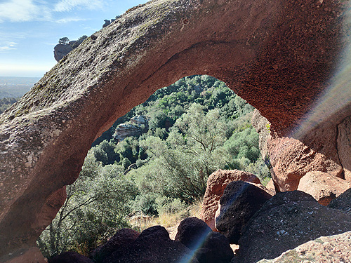 . el paisatge tant de mitja muntanya (pedra vermella) i cap al Garraf, com les vistes fins al mar