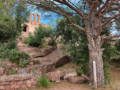 . l'ermita de Bruguers, edifici romànic del segle XIII, ampliat al XVI amb una font i un roure centenari al davant