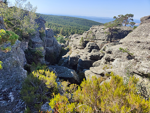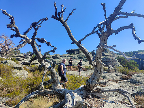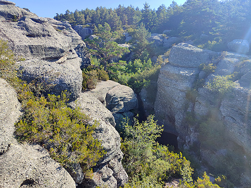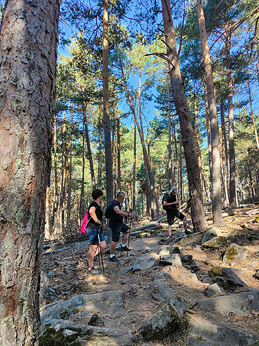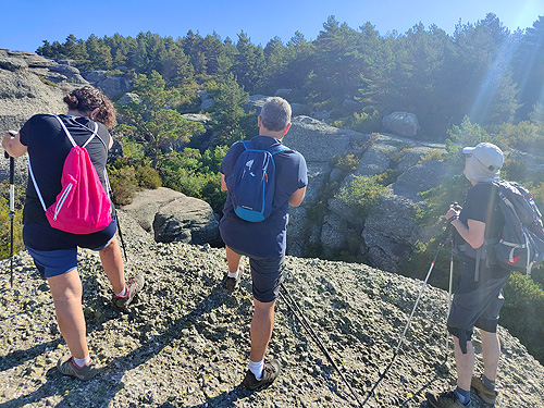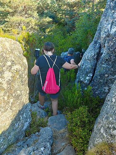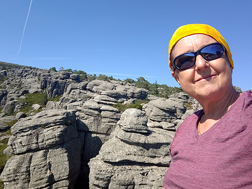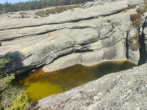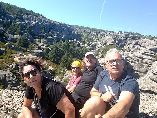 Finalment érem 4: els meus cosins Clarisa i Manolo, el Lluís i jo. De Sòria a l'inici de l'excursió de les Calderes hi ha una hora i mitja, sobre tot per què hi ha 8 kms pista que, s'ha de dir, està molt bé. Les Calderes pertanyen ja a la provincia de Burgos, i el poble més proper és Quintanar de la Sierra. S'hi pot accedir –des de les Lagunes Glaciars de Neila o des del poble citat. El que vam escollir és el camí més curt, uns 8 kms en total. Les Calderes em van captivar per que són unes espectaculars formacions rocoses que en alguns punts poden arribar als 40-50 metres i que ha modelat el modest “arroyo”, rierol de Palezuelo que baixa de les Lagunes de Neila. Si fantàstiques són les fotos, més ho és quan estàs allà sobre mirant el buit i tu tant petita. L'excursió té dos trams ben diferenciats, un pel bosc i un altre per sobre de la pedra, sobre la roca, a una de les bandes del torrent. El primer és una pista sense cap problema amb una lleugera, molt lleugera, pujada a l'anada. En un momento donat, vam agafar un corriol que pujava més però no era el que teníem al track i vam tirar enrera. Ara creiem que podría ser un camí que portava a part superior del torrent i que devia ser pel que va anar un grup va sortir una estoneta abans que nosaltres de l'aparcament. El segon és més complicat: es pot optar anar per sobre la gran base rocosa, irregular, amb llocs trencats per l'aigua i el vent, o més per dintre del torrent. Cap de les dues no és fácil. Seguint una descripció, vam optar per anar per sobre fins arribar a un punt amb bones vistes del conjunt del barranc. Des de dalt, vam veure l'altre grup que us deixa, al costat de la poca aigua que portava el rierol. Berta Solanas |