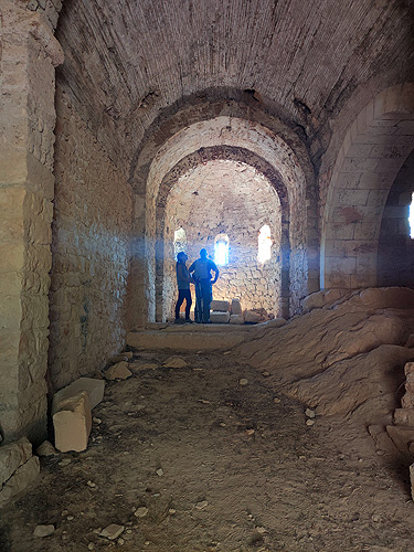 Entrem a l'església de Sant Miquel, descansem, fem fotos i desfem el camí fins a la pista.
