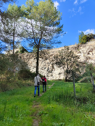 Des d'on deixem el cotxe entrem a la zona de pèlags. Primer anem a l'esquerra a la base el Pèlag petit. Tornem a l'indicador i a la dreta ens queda el Pèlag Fiol ple de vegetació. Al davant ens acostem al Pèlag Sec, ple de gespa i on s'observen prou bé els talls de les màquines per extreure el guix.