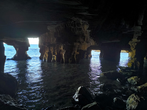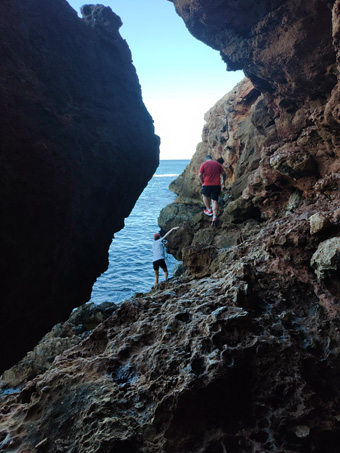 I tant contents. 5 hores de viatge, un bon dinar a la Cala de les Rotes i una caminata fins a la Cova Tallada amb bany final. Primer per la urbanització de les Rotes (amb pendents del 45-50%) després una baixada directa a un caminet vora els penya-segats d'aquest tram de la costa, i per acabat una altra baixada molt directa (amb cordes per ajudar-te) fins a tocar el mar. L'accés a la cova només es pot fer si la mar està en calma (aquí no hi ha marees) per què hi ha trams que vas literalment per les roques sobre l'aigua. Però val molt la pena. Entres a la cova per un forat. A dins està sec, és una cavitat molt gran, i hi ha com un llac on t'hi pots banyar sense problemes. També pot sortir a mar obert. Una passada de sensacions quan estàs allà dins i veus que part de la cova l'han fet els habitants de la zona tallat la roca (de Denia, de Xàbia...). De fet moltes cases de Xàbia estan fetes d'aquesta pedra, de la tosca. Un material que devien treure amb barques cap als ports dels pobles. Des del 2022 hi ha períodes (https://parquesnaturales.gva.es/es/web/pn-el-montgo) en què per accedir a la cova s'ha de demanar permís a la Generalitat Valenciana ja que es troba al Parc Natural del Montgó. Nosaltres el vam demanar però a la garita d'accés al camí no hi havia ningú. S'ha d'anar amb calçat de muntanya i està acostumat a caminar per terrenys inestables. Berta Solanas |