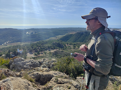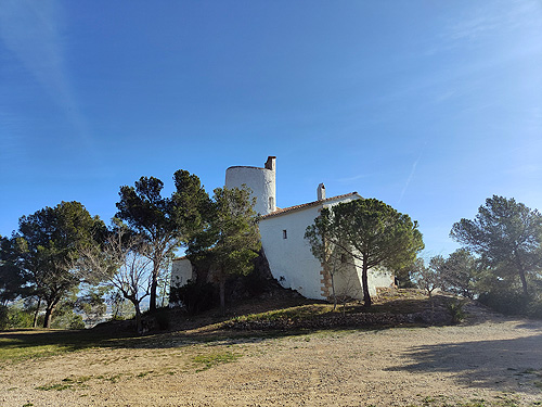Matinal per les terres més interiors del Baix Penedès, a la serra del Quadrell. No ho solc fer, però aquest cop em vaig mirar l'itinerari i vaig veure que aquí ja havíem estat. Aquí és a l'ermita de Sant Antoni de Pàdua, sobre Albinyana. I sort, perquè l'excursió, que era una piruleta, començava al poble i hi havia un bon tram per la carretera. I tant de pujada com de baixada passava per l'ermita o molt a prop. A més de quilòmetres, ens vam estalviar uns 200 metres de desnivell.