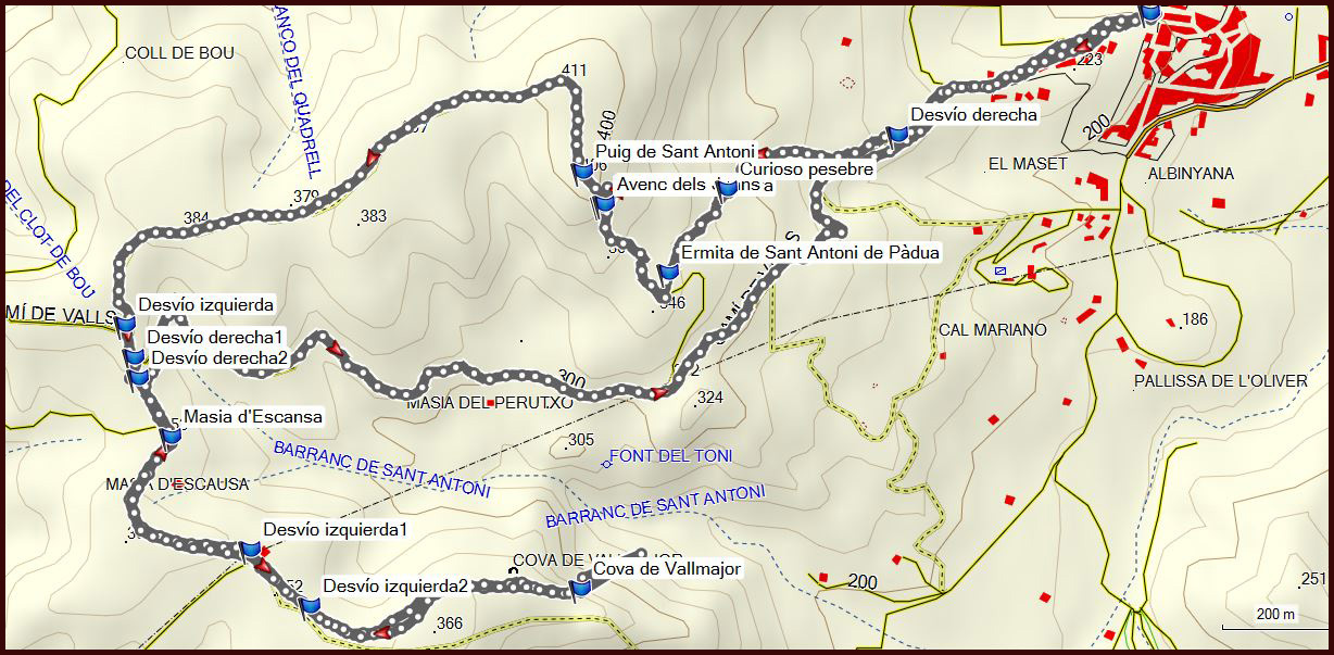 Va ser una ruta molt tranquil·la, amb molt poca gent i bones vistes ja que l'anada fins a la cova va per un camí enlairat. La cova, molt popular pels espeleòlegs, és la gràcia de la sortida. Som conscients que no tenim equipament així que ens conformem en anar fins on puguem, ajudats per una corda en el primer tram. Com que han trobat restes de pintures atribuides a l'edat de Bronze hi ha una part que està bloquejada amb una porta per evitar que es degradin més. L'ajuntament d'Albinyana és ara propietari de la cova i volen fer un centre d'interpretació virtual per donar-la a conèixer.