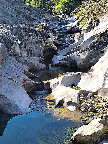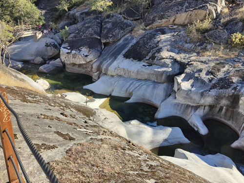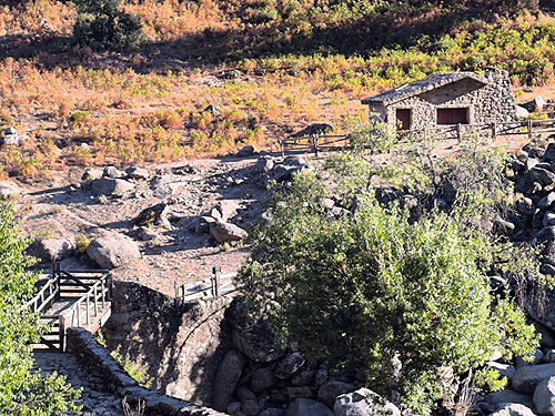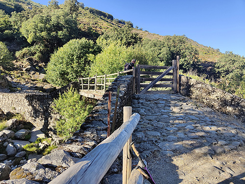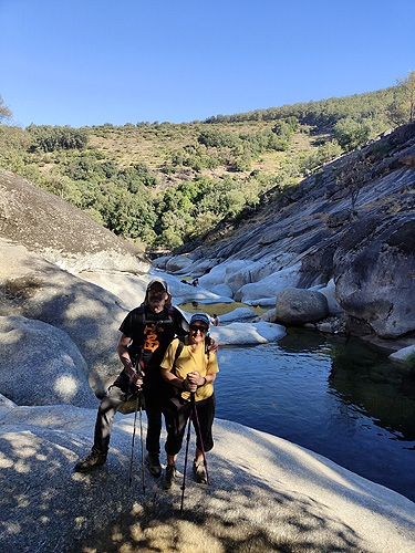 Tercera i última excursió d'aquest estiu. a la resta d'Extremadura no en vam fer. Estem ja a la Vall del Jerte, a la banda sud de Gredos, a la Garganta del Infierno. En realitat Los Pilones és la gràcia d'aquesta excursió. És un tram del riu en què la roca forma unes petites basses. La pedra és blanca i el contrasts és magnífic. El que va passar aquest dia és que hi havia tant poca aigua que no era fàcil acostar-s'hi i no ens vam banyar. Nosaltres vam fer la ruta primer per dalt, l'anada, fins al refugi i pont del Sacristán, i la tornada pel camí paral·lel als Pilones i al barranc. Ho vam fer així amb la intenció de banyar-nos però no va poder ser. I ara penso que ho havíem d'haver fet al revés. Hauríem fet el camí fins a Los Pilones sols i, en canvi, vam trobar, tropocientes persones. Per què la majoria de la gent va a los Pilones (uns 4 kms) i torna pel mateix camí. Amb tot és un lloc molt xulo on mereix la pena anar-hi. Unes birres i unes olives va ser el nostre premi a haver-nos aixecat d'hora. Amb la ruta que vam fer vam comprovar com fins i tot en els terrenys més escarpats tenen plantats els cirerers. És el cultiu que més abunda i a la primavera és un festival de flors blanques. Berta Solanas |
