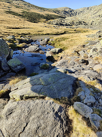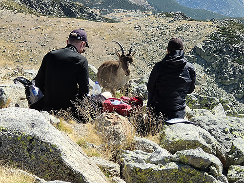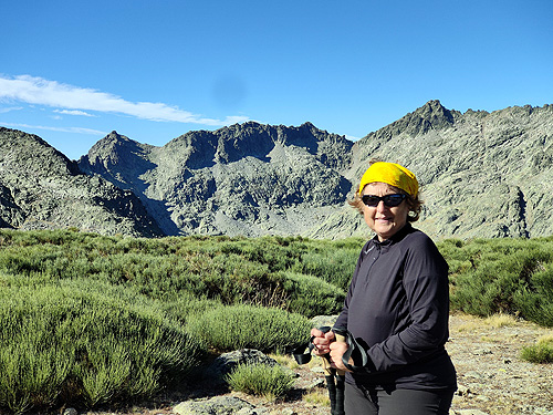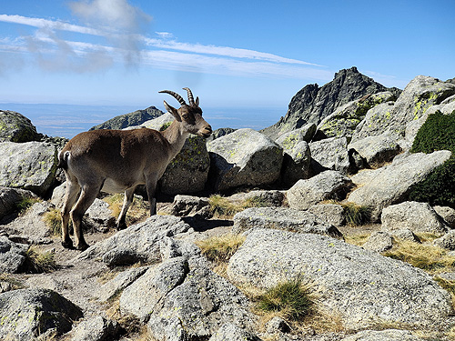 L'altra avantatge és que tens les vistes de l'Almanzor (cim al que ja havíem pujat el 1987) i també del circ de Gredos. El que no es veia era el refugi i molt poc la Laguna Grande ja que tenia molt poca aigua. Fins al Mirador de Gredos el camí és el mateix pels dos destins. Tot està empedrat i et demanen que no et surtis de la senda. El camí surt de la Plataforma de Gredos, a uns 1.700 mtes d'alçada: no hi ha arbres i quasi tampoc vegetació, només roques i formes que ha anat erosionant el vent. Des del mirador surt una senda a l'esquerra que va pujant fent lomes fins arribar al Pico Morezón. Al final el pendent és més fort. Allà vam trobar les cabres que, acostumades a la presència humana, venien a demanar menjar. Des de dalt ees veu pràcticament tot el camí de tornada fins a trobar l'empedrat pel que hem anat al matí. Vam decidir no anar fins al refugi del Rei (en ruines) i ens vam estalviar algun quilòmetre. La veritat és que ens havíem passat el trencall més directe i no ho vam veure massa clar. Berta Solanas |
