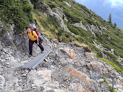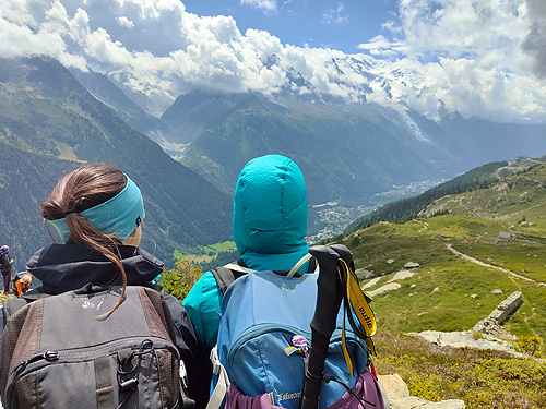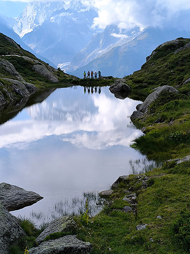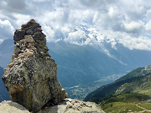 A llac Blanc ens vam trobar i vam fer la baixada els 4 junts, tots amb el telèfèric, però per una ruta diferent a la de l'anada dels papes. La gràcia d'aquesta excursió és que tens al davant el Montblanc, l'Aguille du Midi, l'Argentiere, els glaciars.... Això, és clar, si el dia és clar. Vam agafar un dia mig-mig, a estona es veia i a estones no. Però va ser molt xulo. Només va sobrar la gran quantitat de gent que hi havia. Berta Solanas |