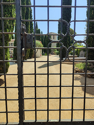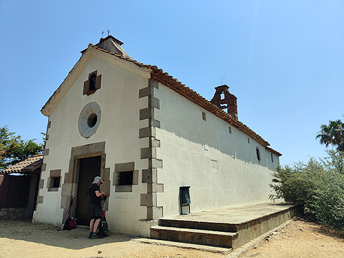 D'aquí a gairebé el Cementiri de Sant Andreu de Llavaneres on està l'ermita de Sant Pere, el camí va encaixat entre parets, ja he dit que no se pq les van fer. Entrem al cementiri però l'ermita està tancada.