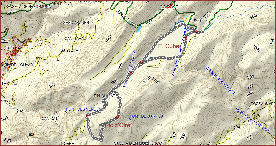 Nosaltres vam anar a Fornalutx ja que allà vam trobar lloc per dinar al restaurant Sa Antuna. Vam compartir aquesta sortida amb una parella de mallorquins (ella dominicana, ell lleonès) que havien arribat al coll i no havien trobat el camí cap al cim. No portaven ni mapes, ni Gps, ni res. Caminaven pel que havien llegit i/o per intuició. Tots quatre vam estar molt conents, ells gairebé sempre també van sols.