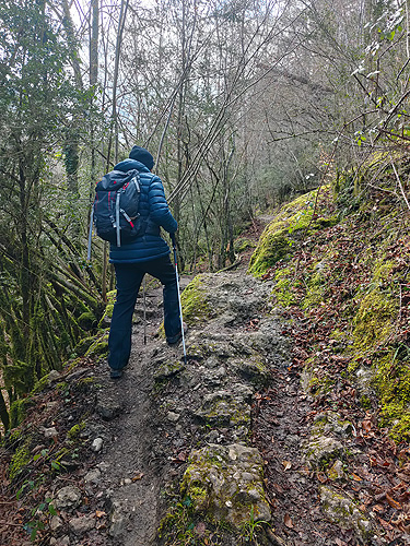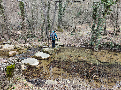 Seguim el torrent per un camí paral·lel al marge esquerre. Hi ha diversos punts en què pots acostar-se a l'aigua i anar per un camí paral·lel. Vas passant per diferents gorgs, bassetes i cascades fins arribar a una més gran.